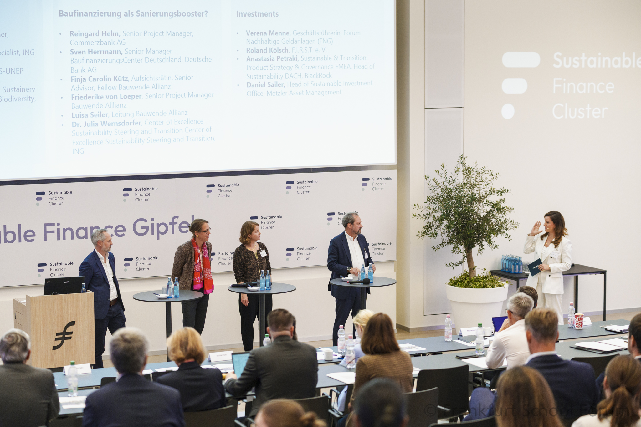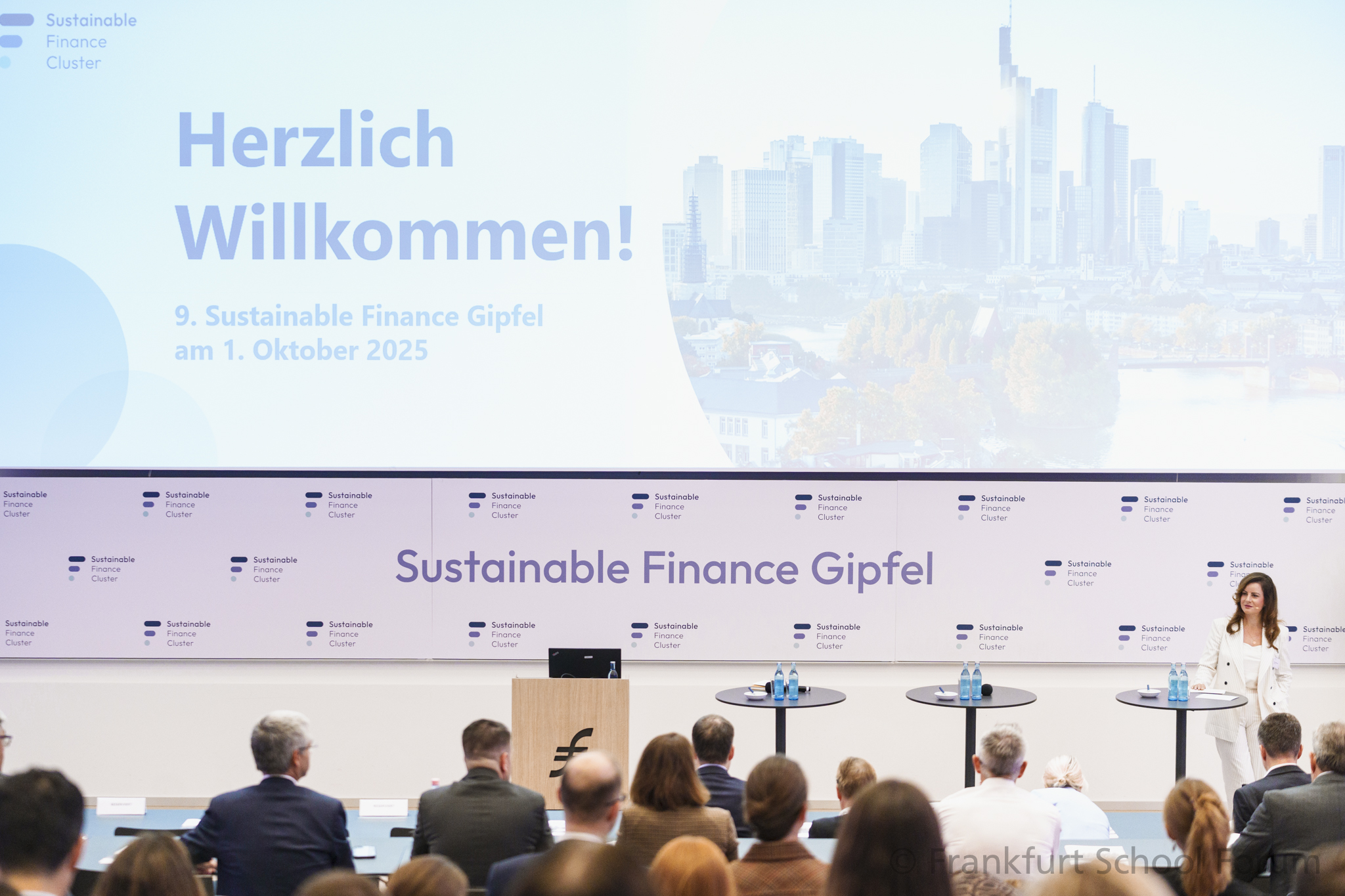„Seit 2005 ist die Frankfurt School Schauplatz hochrangig besetzter Leitevents für innovative Business Communities. Der Sustainable Finance Gipfel ist mit seinen strategischen Diskussionen, innovativen Lösungsansätzen und wertvollen Networking-Möglichkeiten eine der wichtigsten Branchenplattformen für Gestalter der nachhaltigen Finanzwirtschaft.“